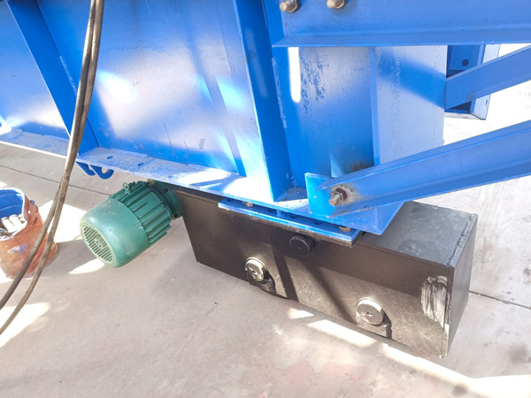 行走機(jī)構(gòu)上與門架底縱梁相連,電機(jī)功率為2×7.5KW,臺(tái)車運(yùn)行速度為8m/min。