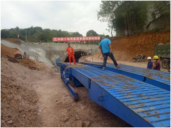 3、棧橋上方空間開闊,方便各種施工車輛的通行,混凝土罐車可方便的在棧橋兩側(cè)傾倒混凝土,挖掘機也可以無障礙的在棧橋上進行回轉(zhuǎn),便于清理仰拱余渣。